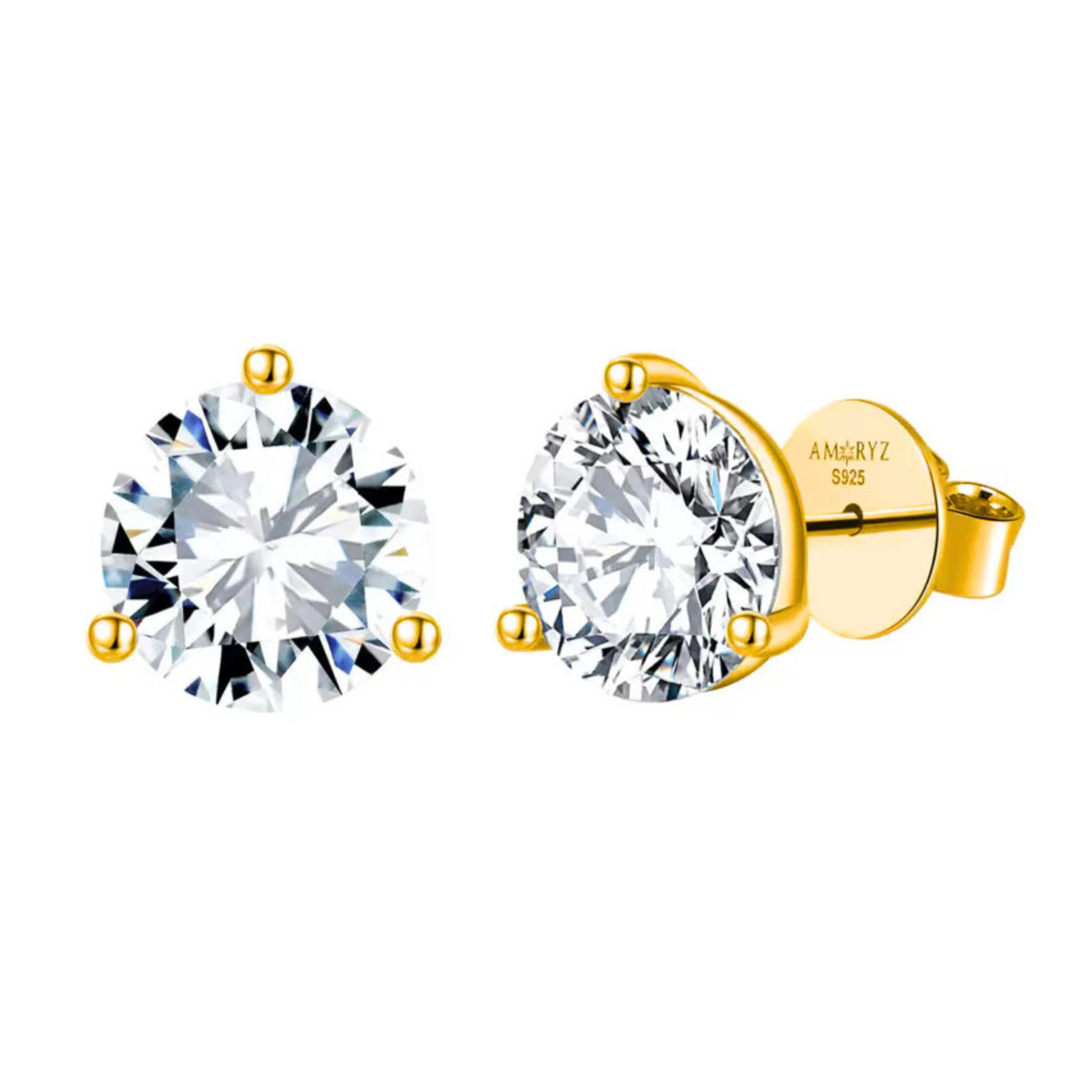 أقراط مارتيني دائرية ثلاثية الشعب من الذهب الأصفر عيار 14 قيراطًا مرصعة بأحجار المويسانايت، عيار 6 قيراط، خالية من الشوائب. - Gold Vermeil & Moissanites (In stock)