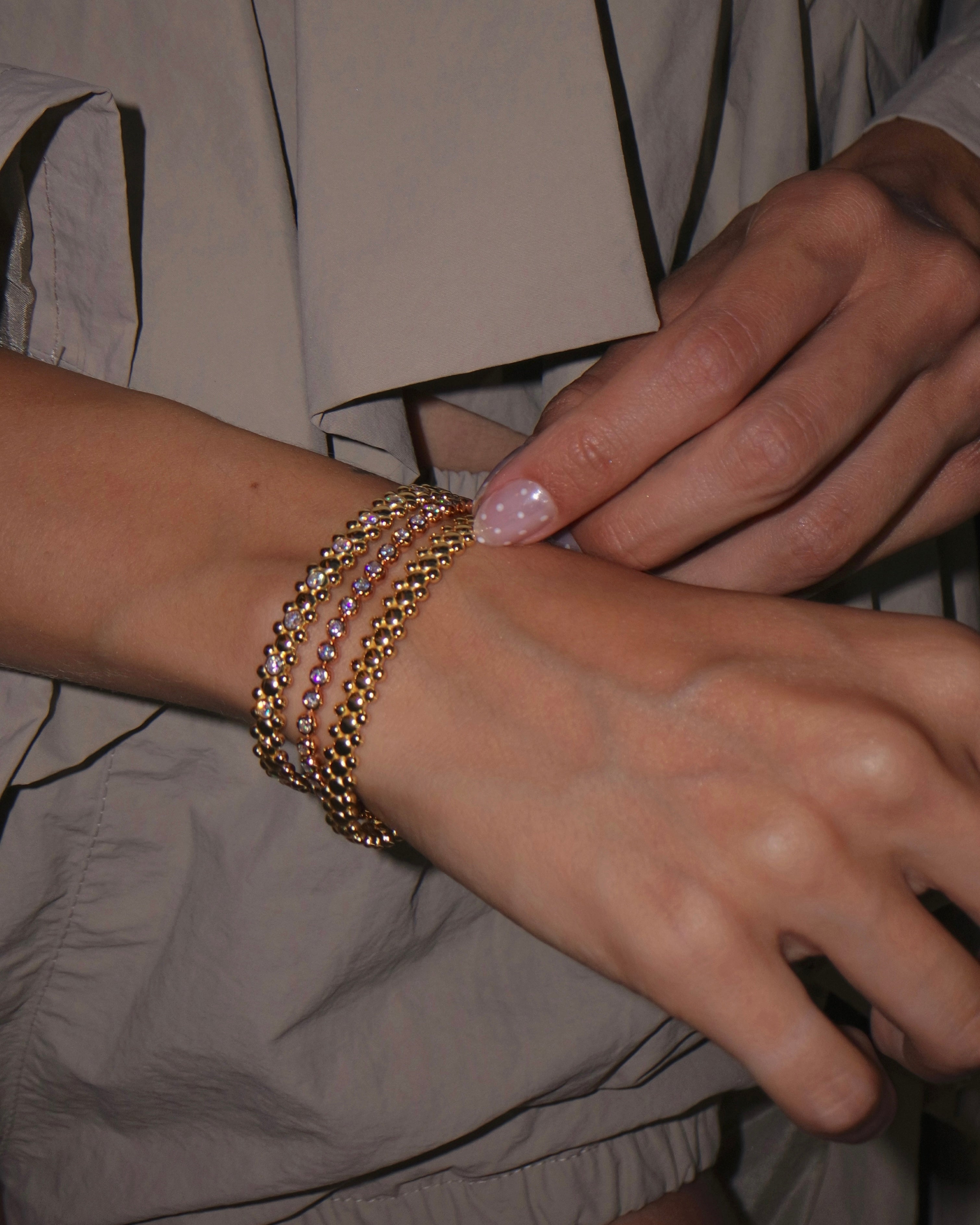 14K/18K gold vermeil is solid 925 silver coated in a thick layer of 14K/18K gold. AMARYZ pieces use 2.5 microns of gold applied in 8 layers, giving the jewelry a long-lasting, tarnish-resistant finish that looks like solid gold for years.